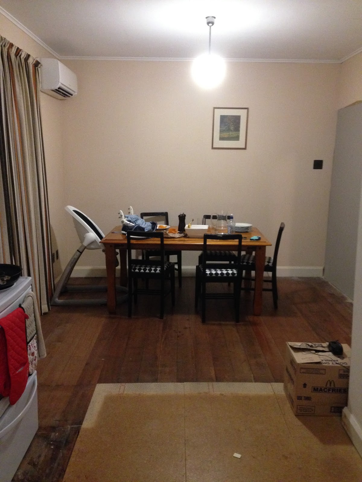 The kitchen was at the back of the house, in a small room which doesn't get much natural light. Because it was the kitchen it had doors to everywhere off it - the entrance passage, a bedroom, the dining room and the bathroom/laundry passage.