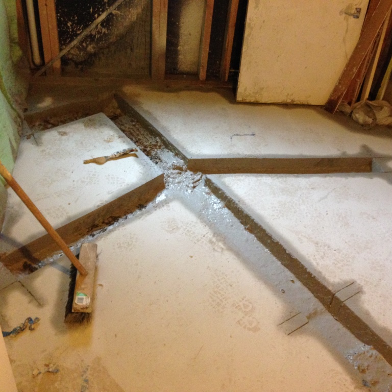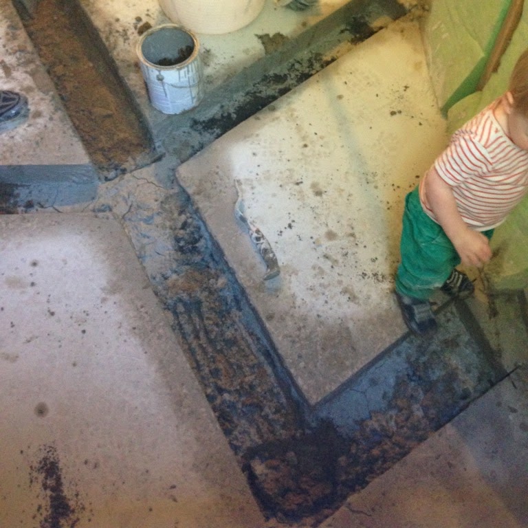 Step one was getting channels cut into the concrete floor - although the room was intended to be a bathroom, and the drain had been added outside the external wall, no in floor plumbing had been allowed for. We outsourced that, because it is a messy, horrible job that requires special equipment. I think that was the right call, because the pros made short work of our awkward little job. Shout out to Allcutt Concrete Cutters - they were great to deal with and got the job done promptly.